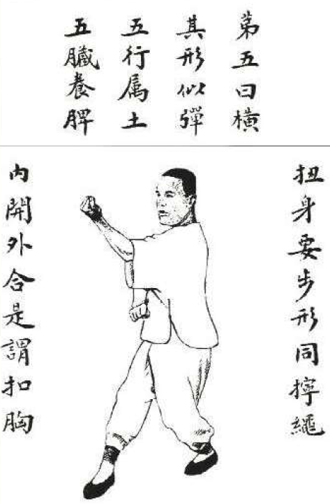 - 五行單形連貫練習:按劈-崩-鑽-炮-橫順序連貫練習,控制速度,保證每個動作的勁力到位與身形穩定,反復打磨銜接細節。