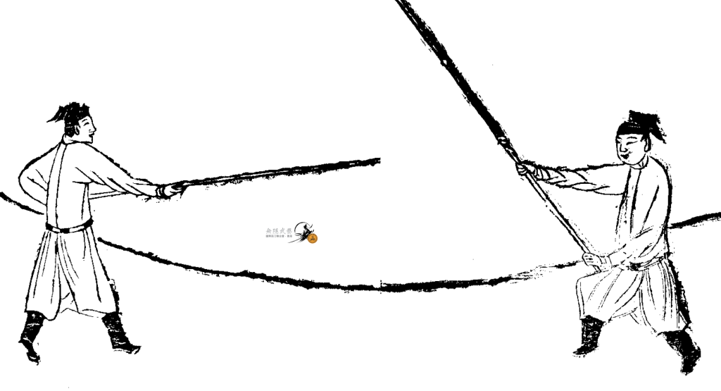 「扯」- 如他往中刺一槍,我往他槍外帶退一尺,身足不動。