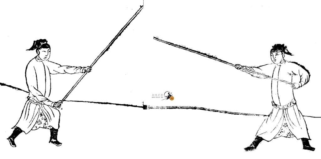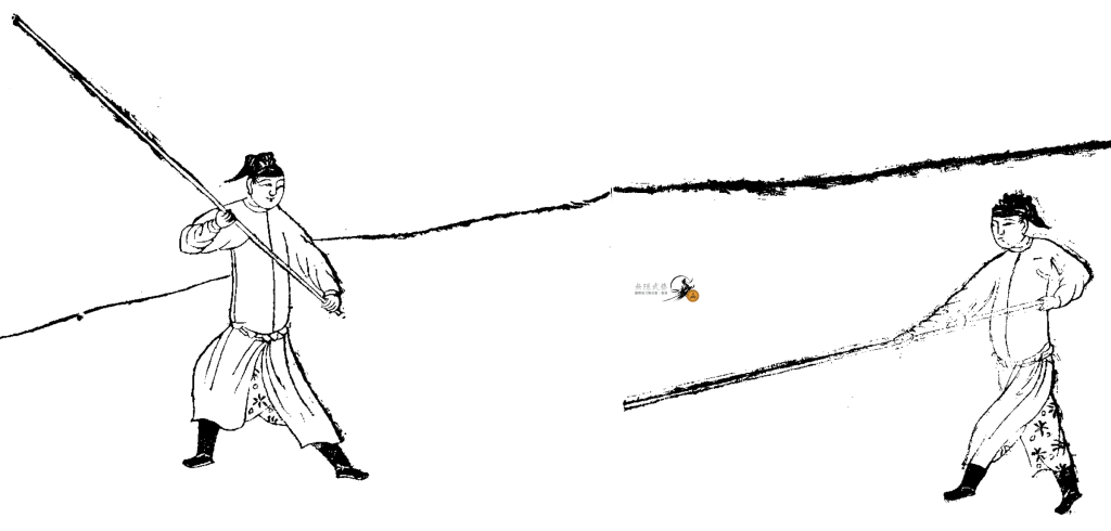 正中平勢時嘗操演此勢,槍杆只宜七尺五或八尺,臨陣用九尺或一丈